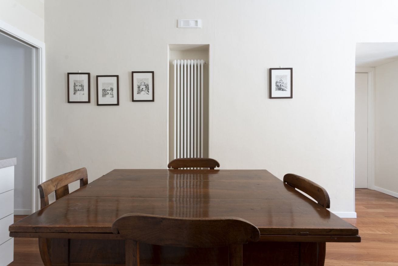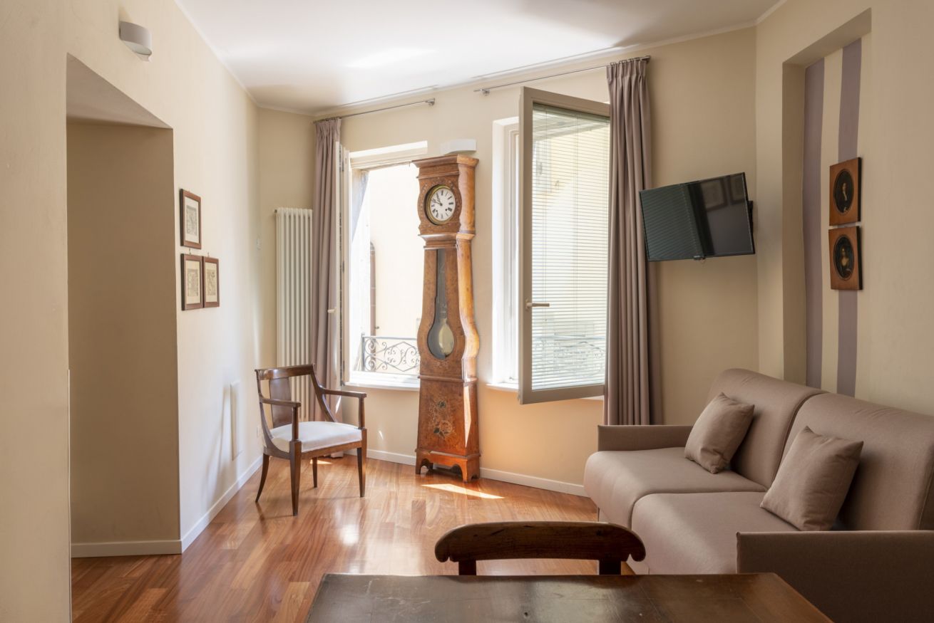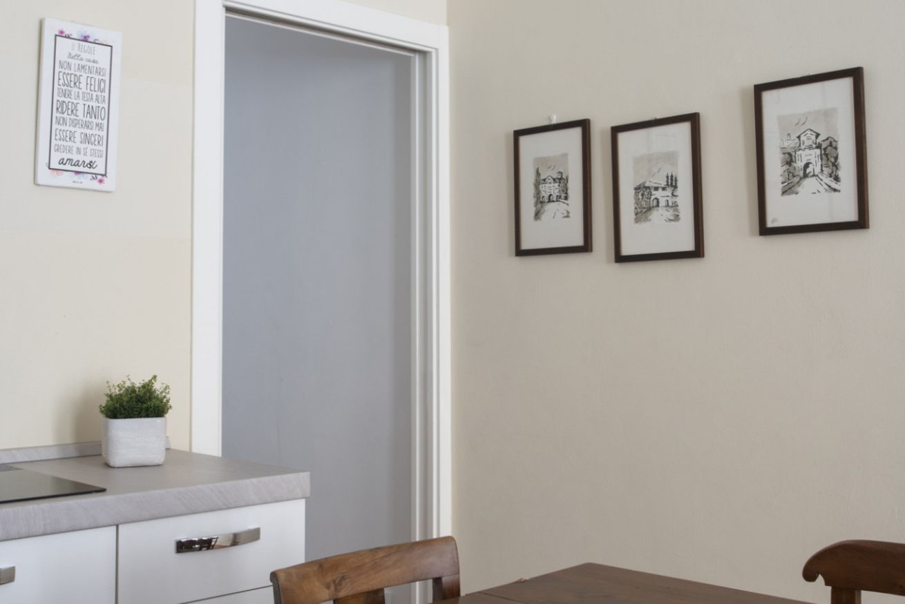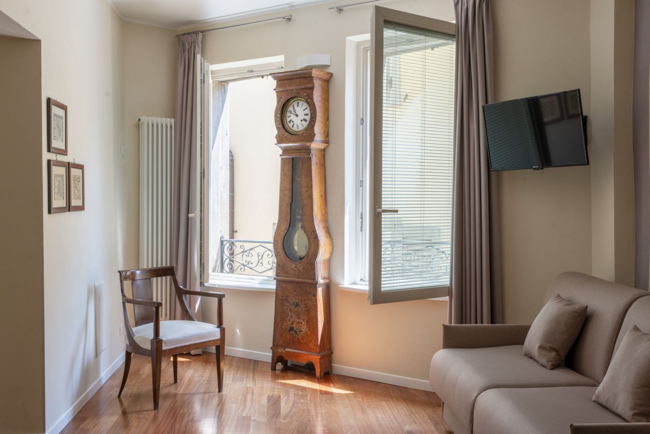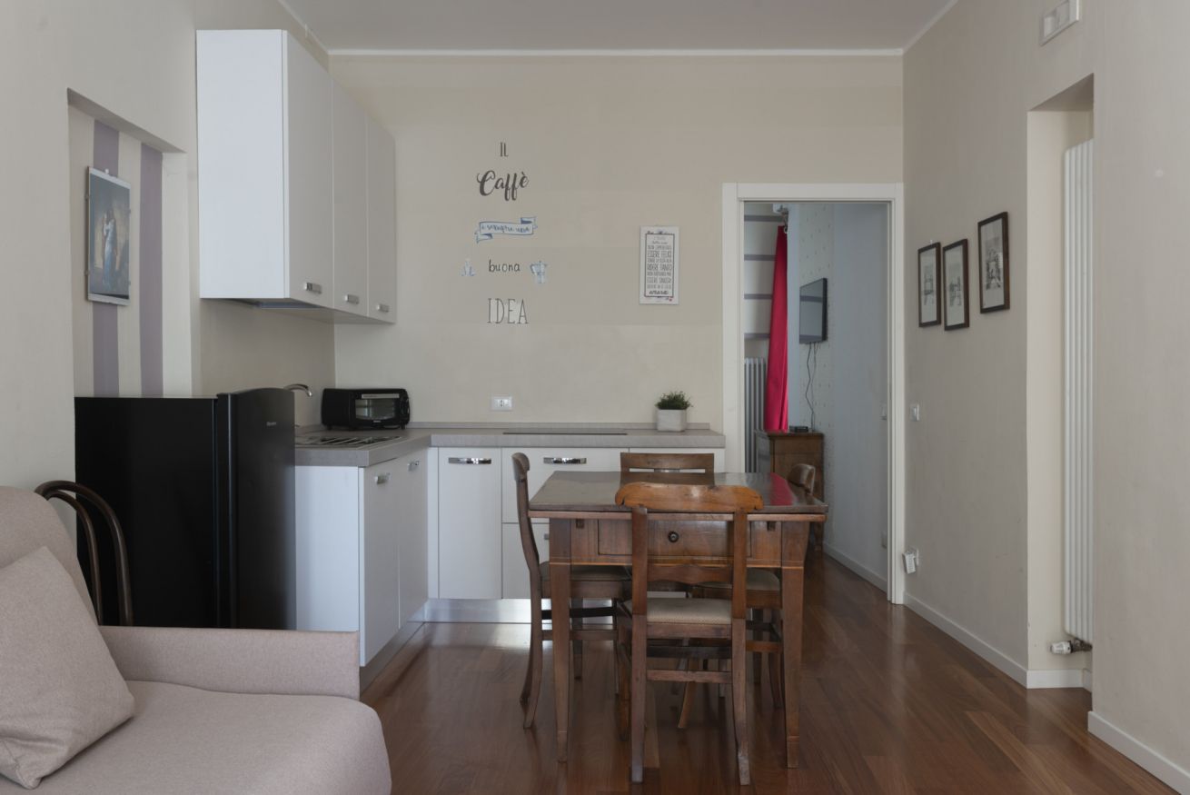 L'appartamento è composto da un soggiorno con angolo cottura e divano letto, una camera da letto con letto matrimoniale, e un bagno ad uso privato situato esternamente all'appartamento, accessibile dall'ingresso comune.